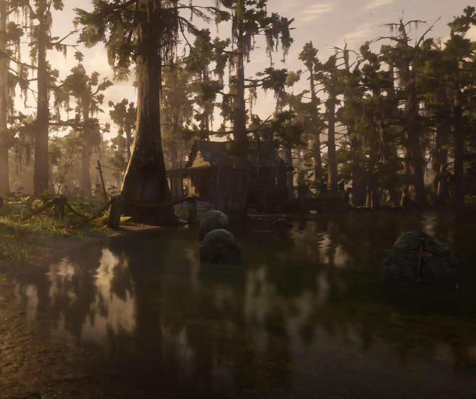 At first it started out as just the cave, which is just basically a house underground. When Quinn showed up it expanded so much that we finally got to see what was outside and it happened to be a recreation of a forest from RDR2, and some of the surrounding swamp areas as well. Only Q has ventured out into the forest but we don't know what's all out there as of yet. 11/3/20